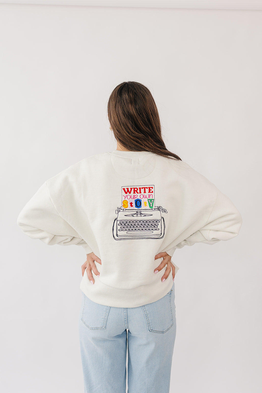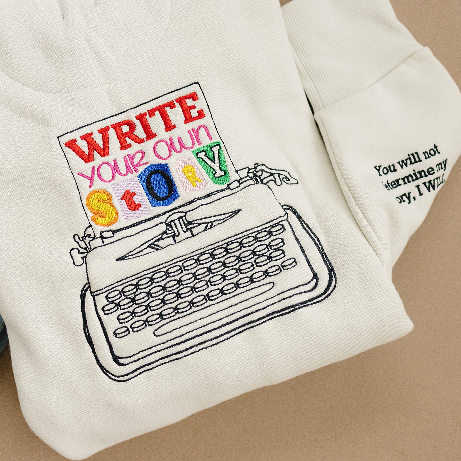 This sweatshirt is your reminder that you hold the pen and the plot twist. With bold embroidery, a rainbow typewriter, and a not-so-subtle nudge on the sleeve, it’s made for rewriting rules—and your own story.