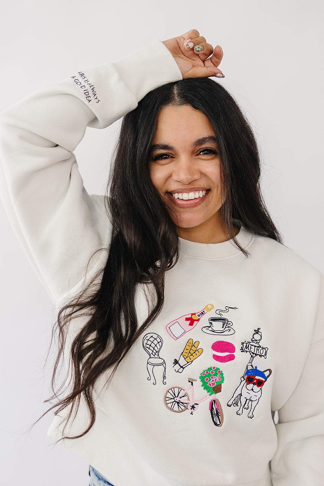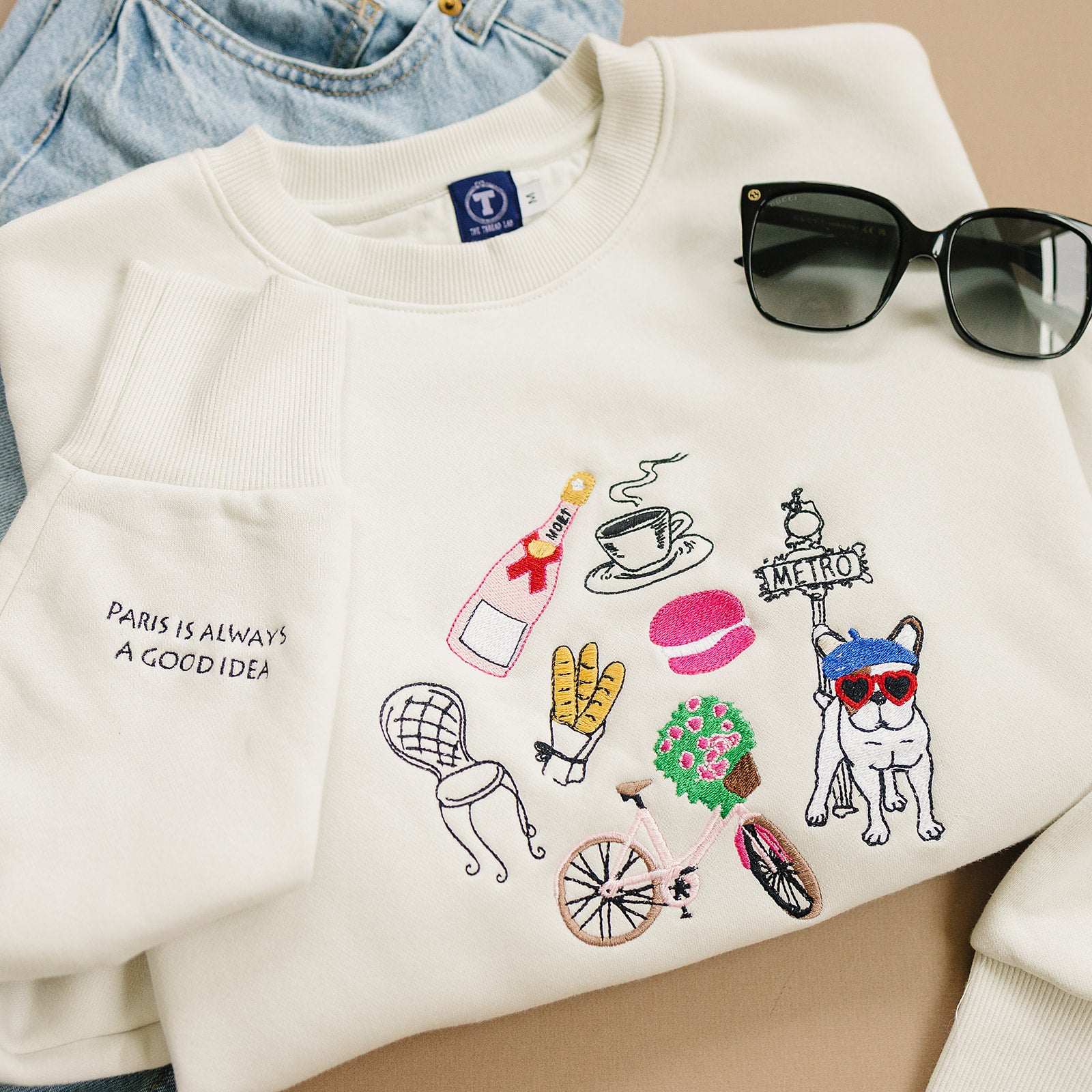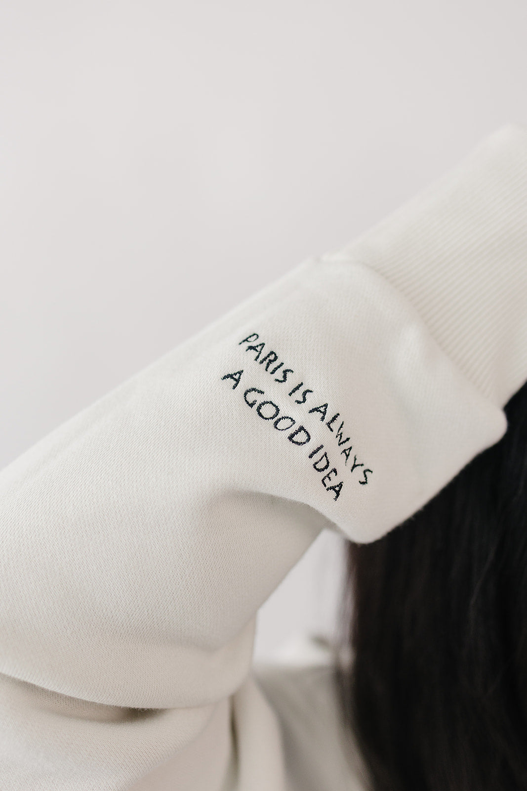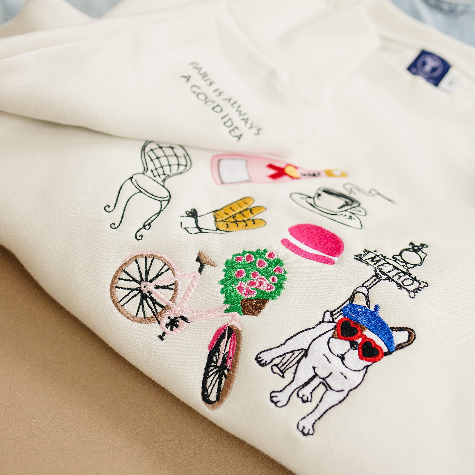 And stitched on the sleeve, a reminder you already knew: Paris is always a good idea.