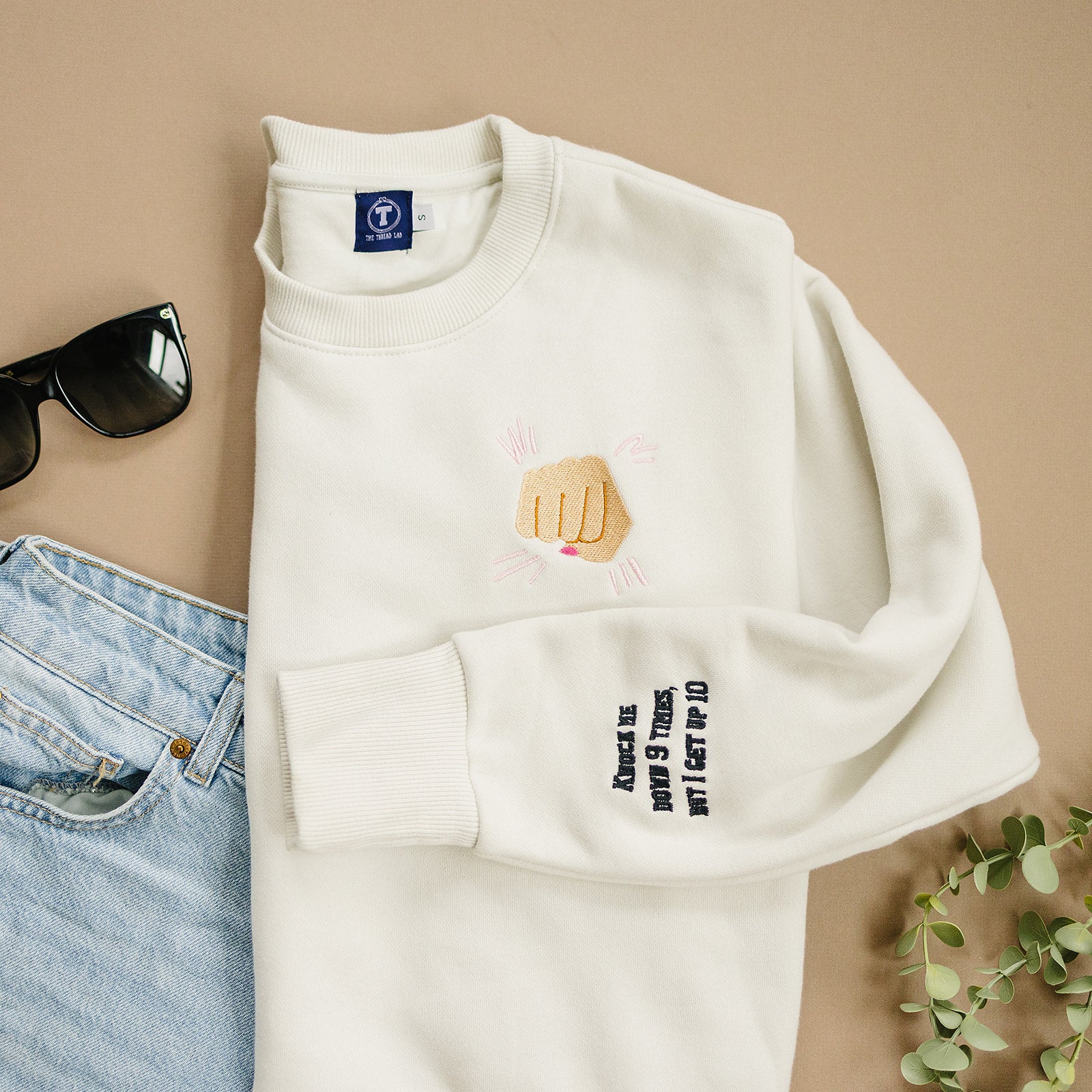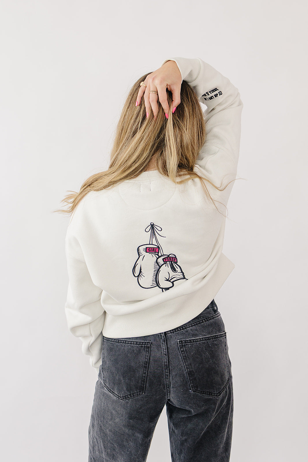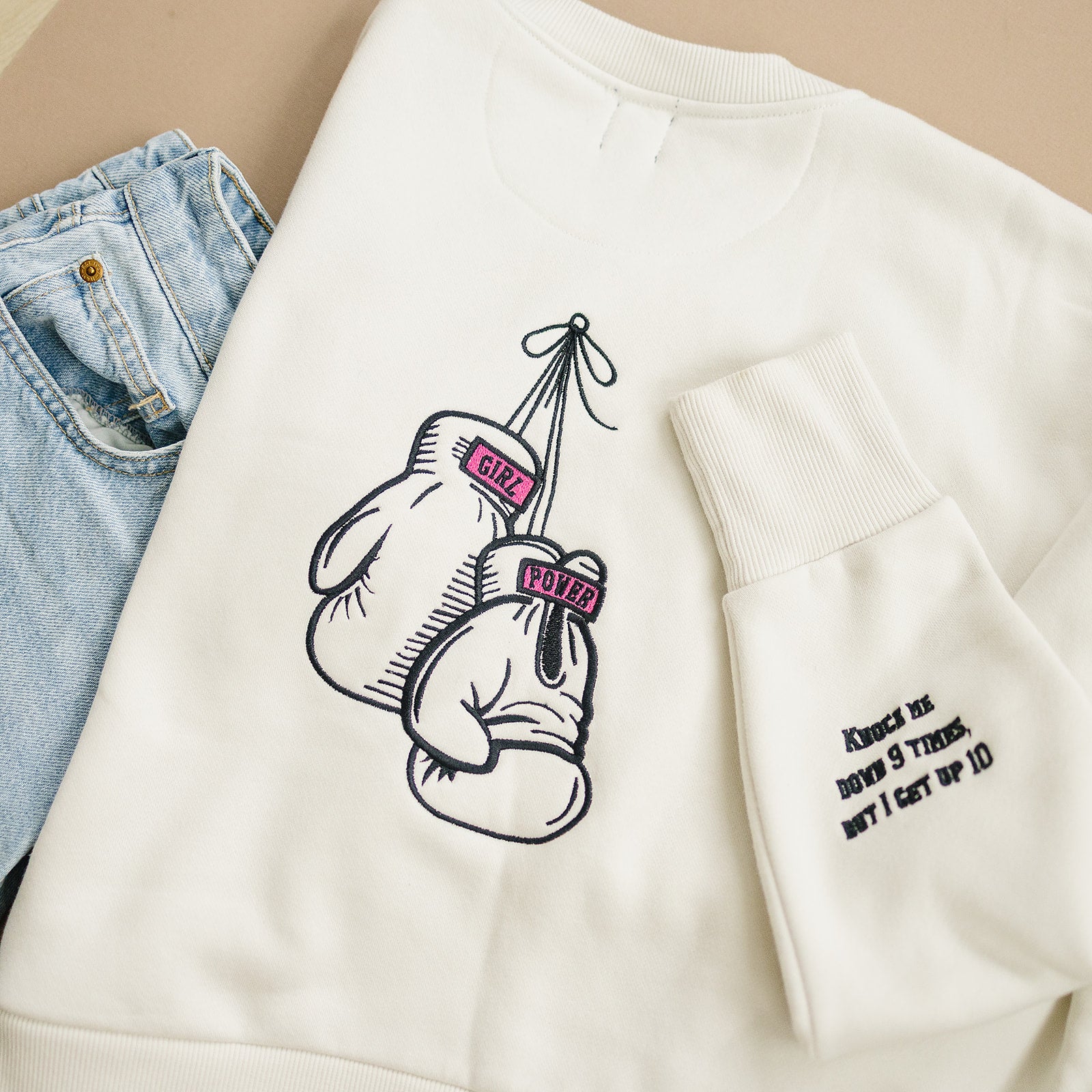 For the girls who’ve been counted out, underestimated, or told to “calm down.” This one’s for rising, swinging, and doing it all with a fresh mani. Fist on the front, fight on the back, and a sleeve that doesn’t flinch: Knock me down 9 times, but I get up 10.
