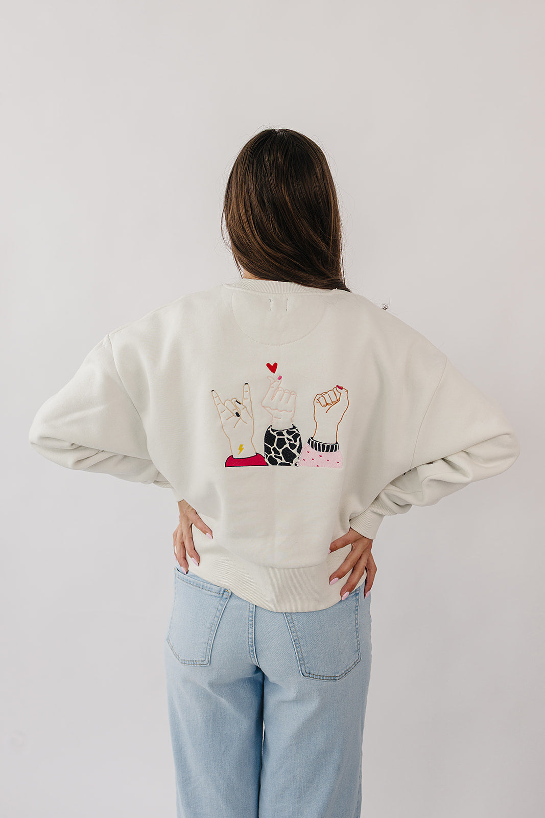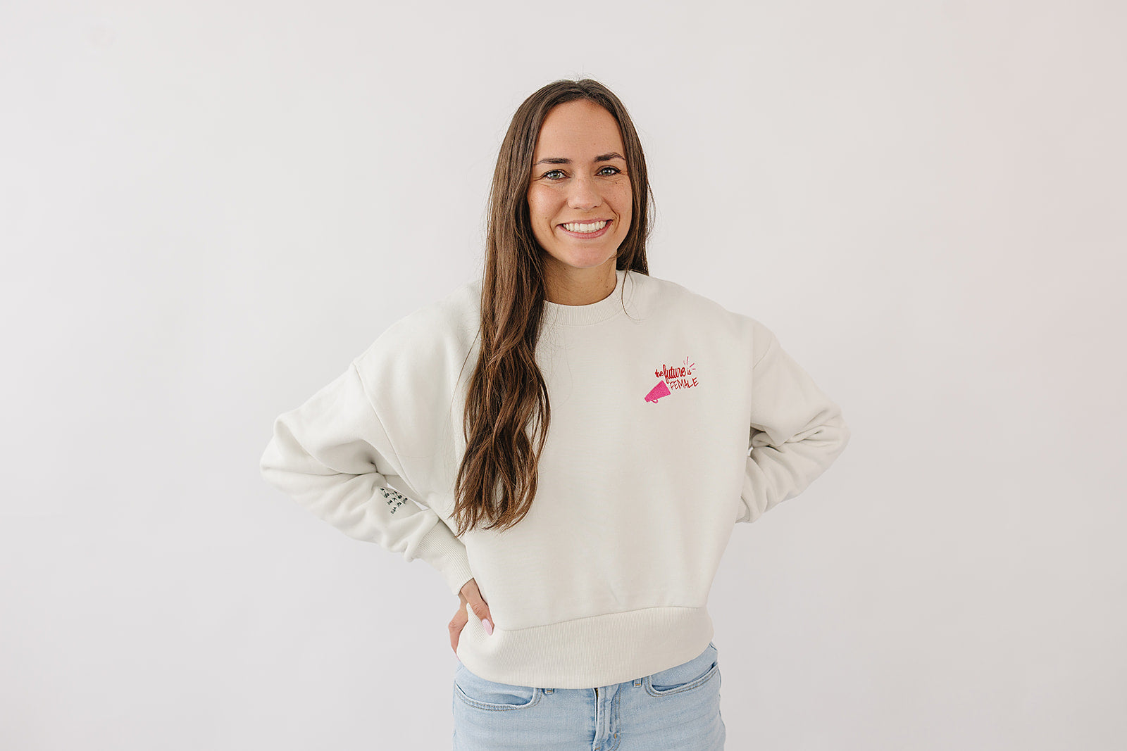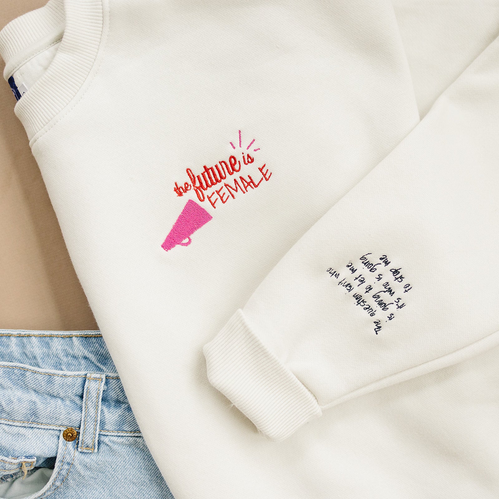 From the pink megaphone to the stitched quote on the sleeve, this one’s made for showing up, speaking out, and standing strong. The back? A trio of hands—different, powerful, united—each making a statement without saying a word.