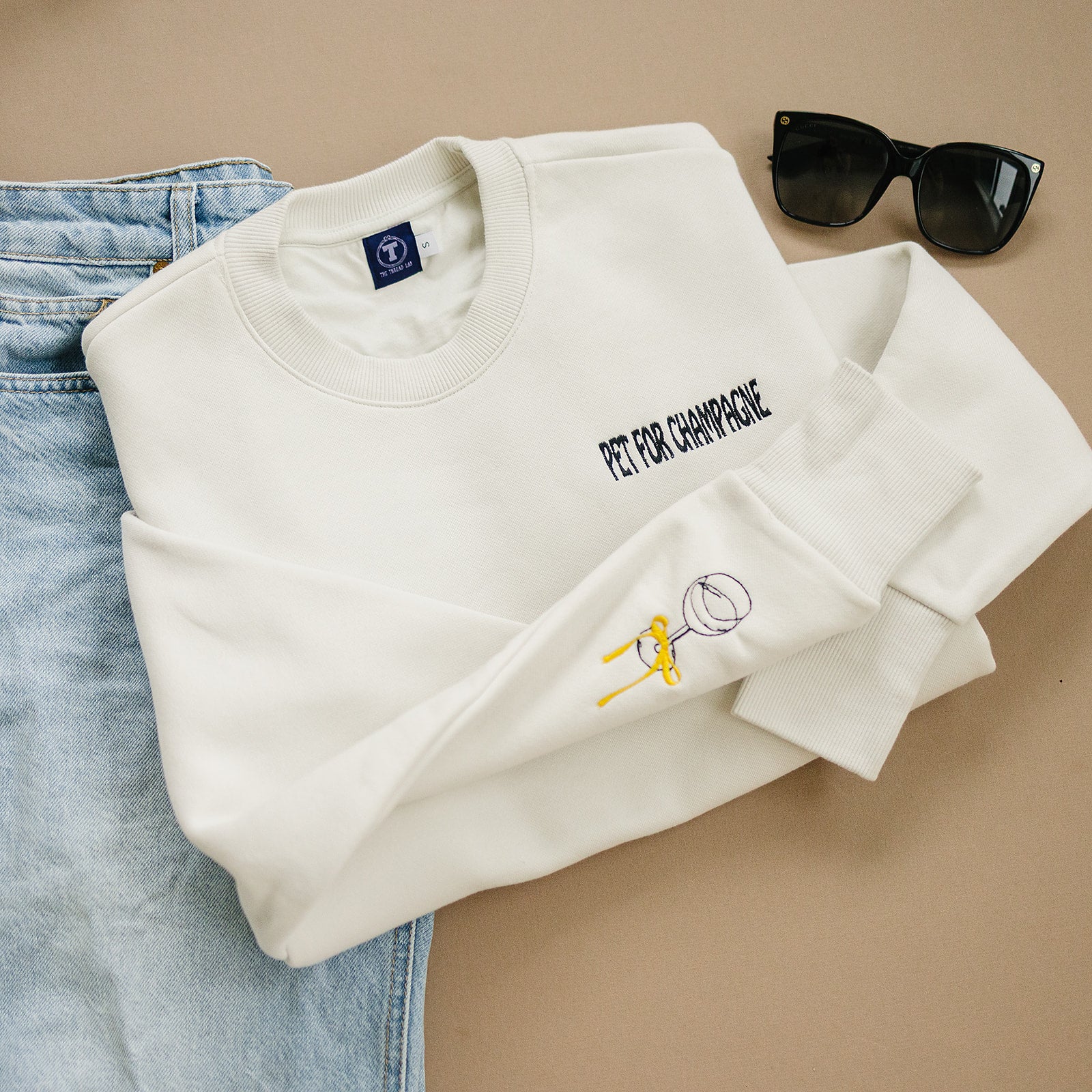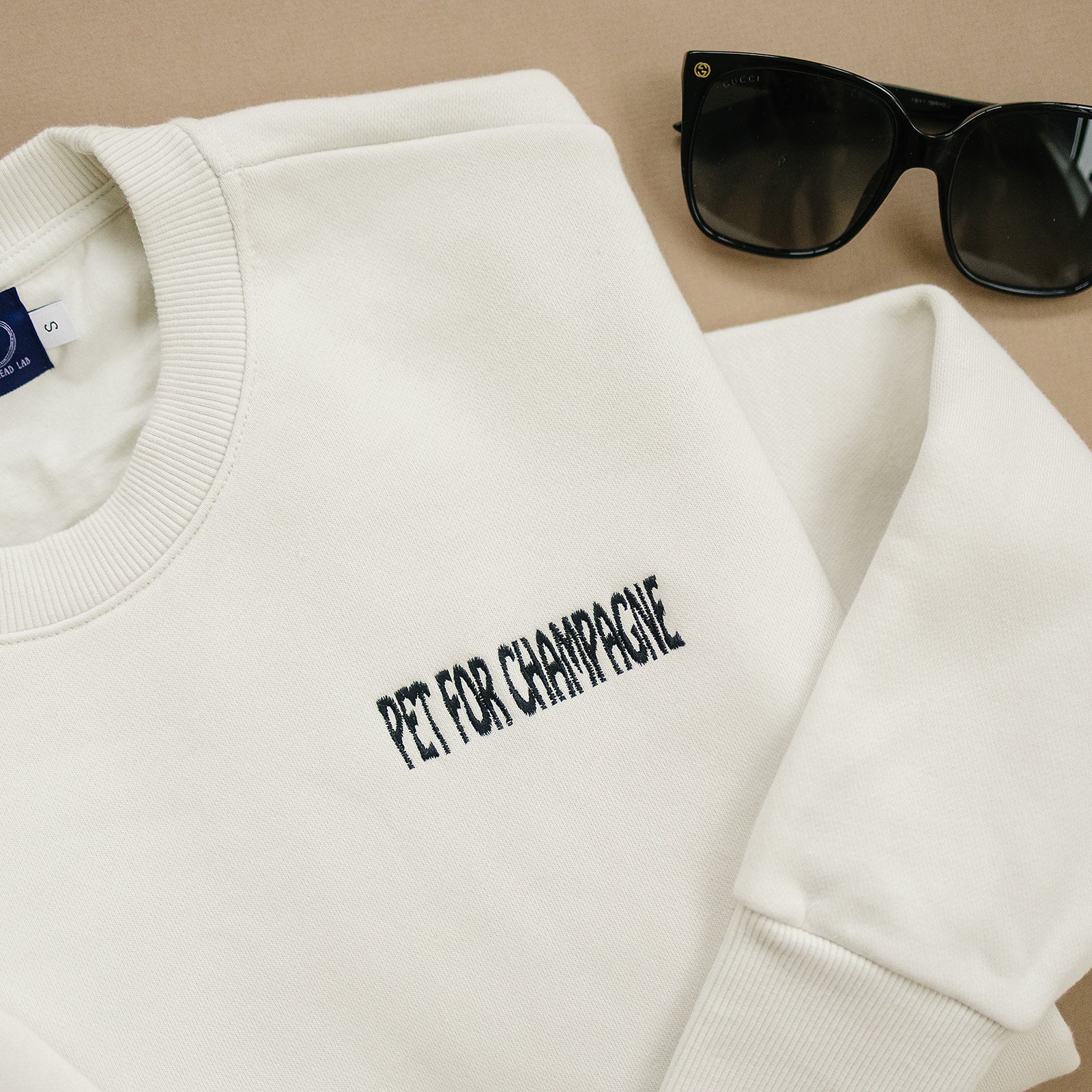 This crew features a Dalmatian with a champagne tower on its back — because sometimes the celebration follows you. Embroidered details on the sleeve and chest keep things cheeky, while the fit makes it feel like your favorite RSVP.